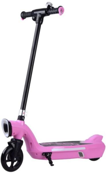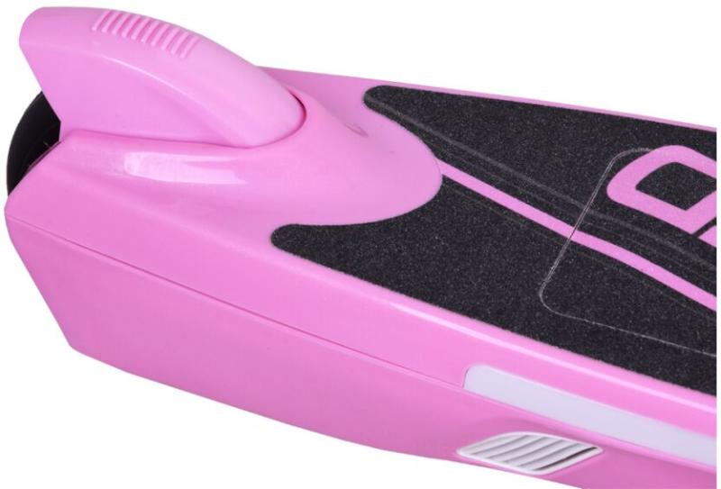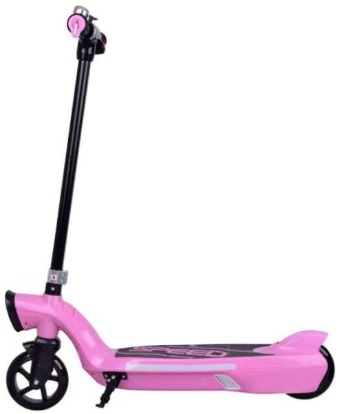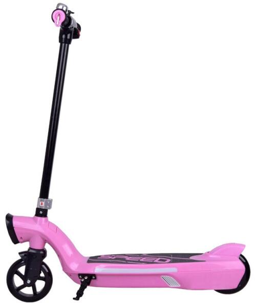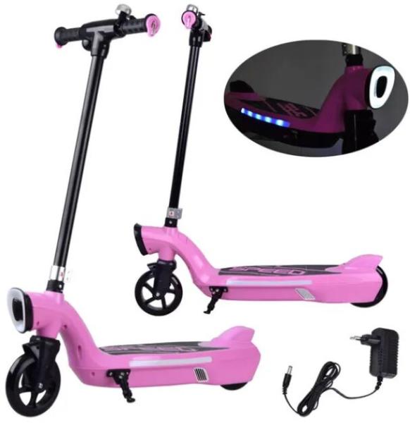 Elektromos gyermek roller LED világítással rózsaszín színben LED világítású elektromos roller minden gyermek számára ajánlat. Remek lesz mindennapi szórakozásként a parkban, a játszótéren. A rollert egy 12V-os 45W-os motor és egy 12V-os 7,5 Ah-s akkumulátor hajtja, mellyel akár 2 órán keresztül is utazhat egy legfeljebb 50 kg-os személy számára. A rolleren elérhető sebesség körülbelül 9-11 km/h. Használható normálisan, lábbal lökve, de ha például elfáradsz, akkor csak nyomd meg a ravaszt, és nagy élvezettel suhansz előre. A lábtartóval és LED-es világítással ellátott roller remek szórakozást nyújt. A roller használható: - modern közlekedési eszközként, pl. a napi iskolába járás során, friss megjelenést biztosítva - mindennapi bevásárláshoz, - nyaraláskor, nagy kempingben - olyan emberek számára, akik nem feltétlenül szeretik a hosszú sétákat (az úgynevezett kanapé szerelmeseinek) Tulajdonságok: - 12V 7Ah akkumulátor - motor 12V 45W - maximális terhelés 50 kg - maximális sebesség 9-11km/h - töltési idő 10-12h - 1 akku használati idő a gyártó szerint kb. 1-2 óra (a vezető súlyától és terepétől függően) - 12V 1000MA töltő Műszaki adatok: - a roller világítása a kormány jobb oldalán található gomb bekapcsolása után működik - elején fehér LED világítás világít - színes LED világítás csillámlik a tábla oldalain - gumis, csúszásmentes fogantyús kormány - jobb oldalon van a járművet indító gomb, amit vezetés közben meg kell tartani - a kormány bal oldalán csengő található - elektromos fék működik, miután az ujját levette a piros gombról - nyomófék - lábtartó Méretek: - hossz 75 cm - magasság a fogantyúig kb. 86 cm - keréktávolság 36 cm - kerékátmérő 15 cm - súlya 7,6 kg A készlet tartalma: - roller - töltő - imbuszkulcs készlet A jármű előnye a kis mérete is, melynek köszönhetően bármilyen csomagtartóban, kis lakásban, irodában elfér.